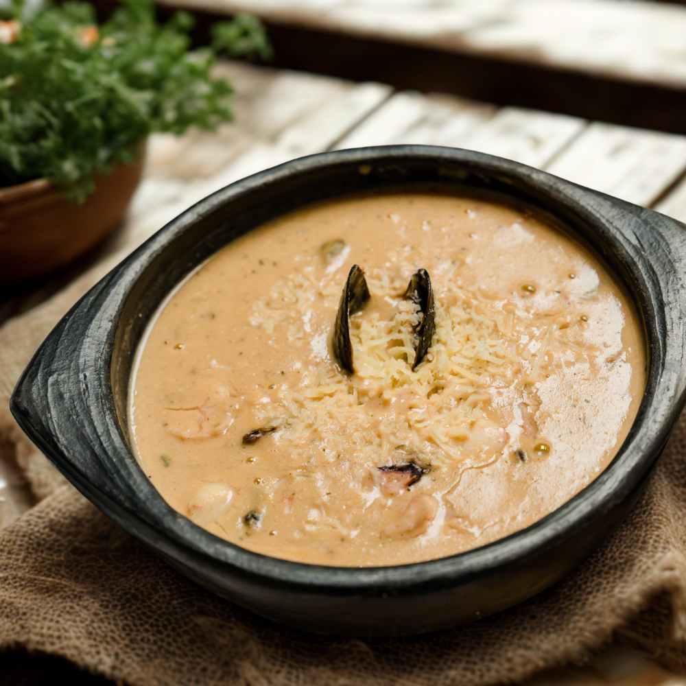Exquisita cazuela de mariscos preparada con nuestra base especial de la casa, que integra todo el sabor del mar en cada bocado, camarones, pulpo, calamar, pescado y mejillones.